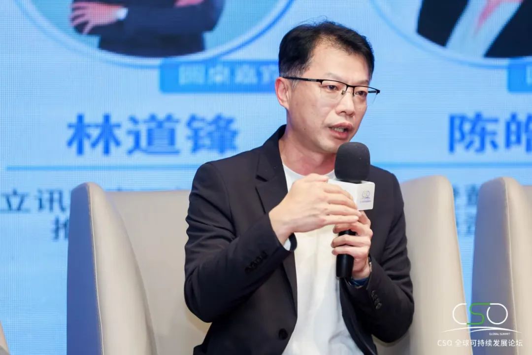 作為行業(yè)代表,立訊精密可持續(xù)發(fā)展推進(jìn)中心林道鋒總監(jiān)受邀出席論壇,參與以“多重壓力下的供應(yīng)鏈綠色轉(zhuǎn)型”為主題的ESG圓桌討論,分享了公司在推進(jìn)綠色轉(zhuǎn)型方面的的實踐經(jīng)驗和深刻洞見。